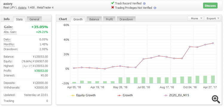 Below images are the real performance of ZigZagBreakoutEA (only LONG) on our real accounts.