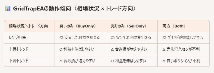 GridTrapEAはさまざまな相場環境に対応できるよう、柔軟なパラメーター設定が可能な設計となっています。